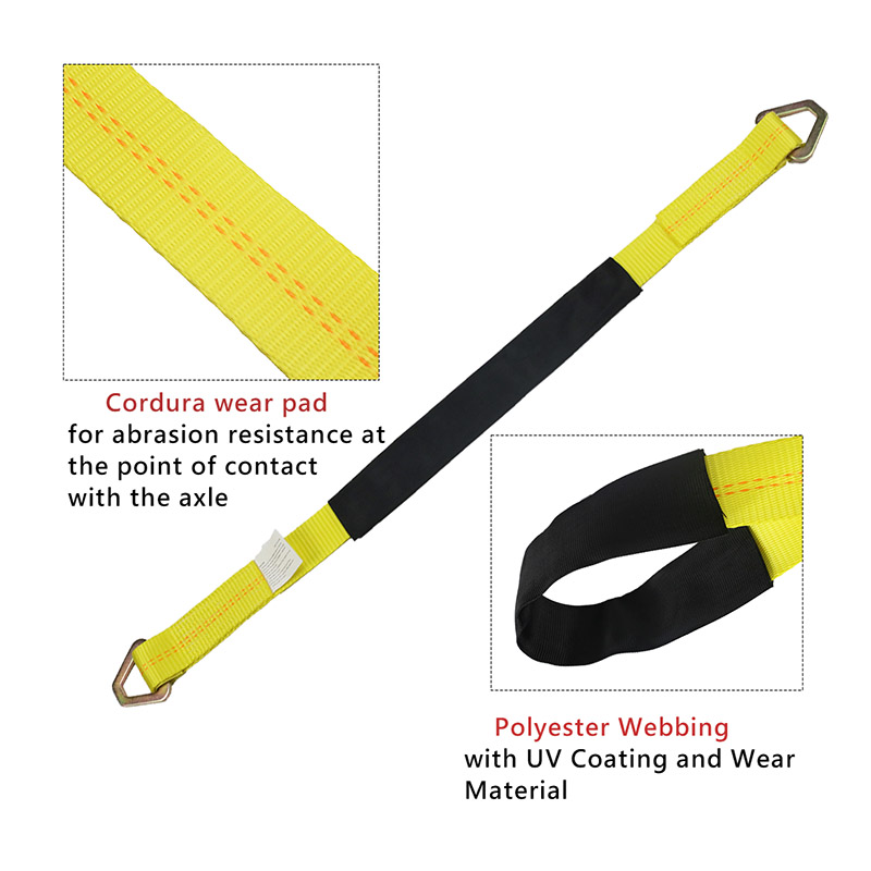この車軸牽引ストラップを2インチのラチェットストラップと一緒に使用して、車両をトレーラーに固定します。